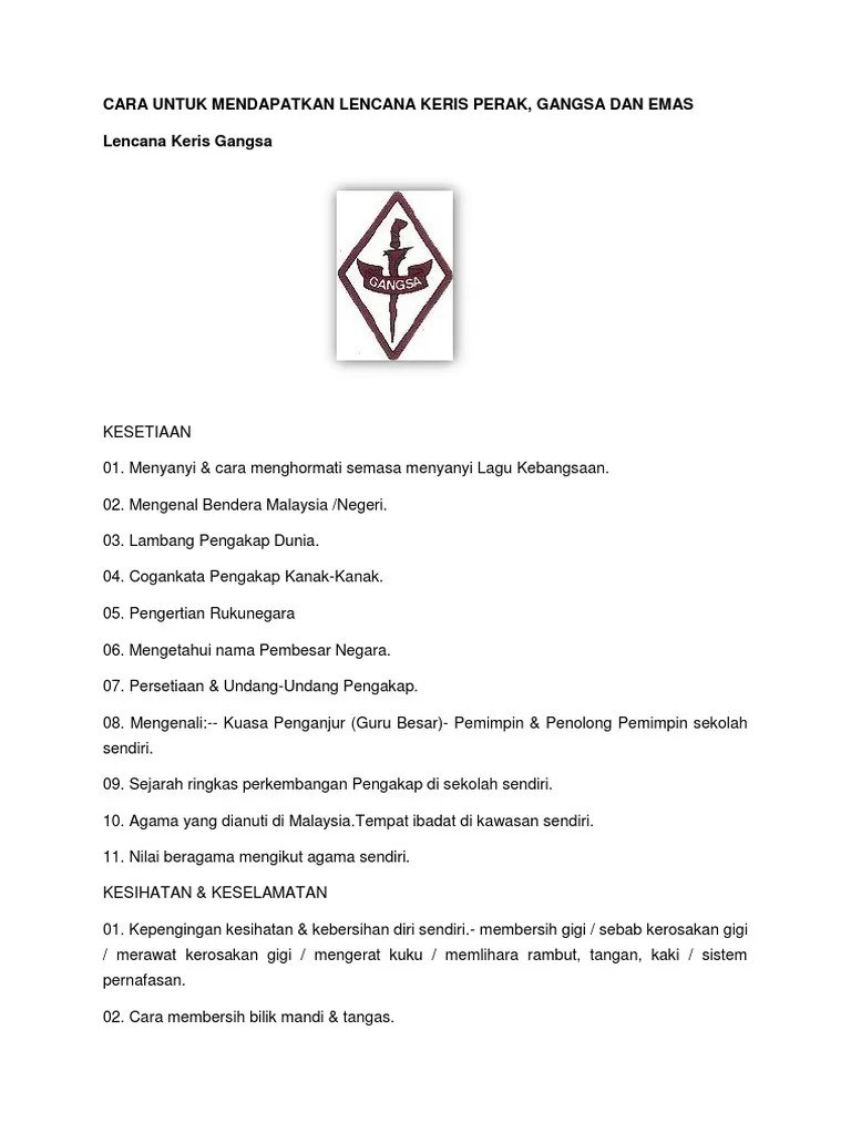 Anda boleh terus download disini . Setelah lulus keris gangsa dan berada di thn 5 anda layak mengambil ujian ini. Hafidz azali mohd noor menerbitkan buku log keris gangsa pada. Anda layak dianugerahkan sijil dan lencana keris gangsa. Salam pengakap.anda ingin mendapat kan contoh buku log lencana keris emas, perak, gangsa dan kertas ujian keris gangsa. Buku log lencana kemajuan keris gangsa disusun dengan sangat teliti dan disemak secara kerap serta ditambah baik supaya sentiasa relevan dan .
