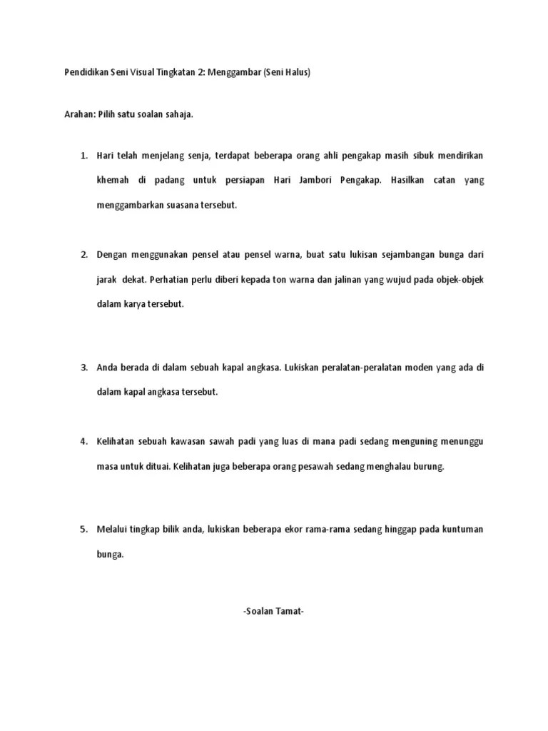 Soalan pertengahan tahun pendidikan seni visual tingkatan 2 adalah .